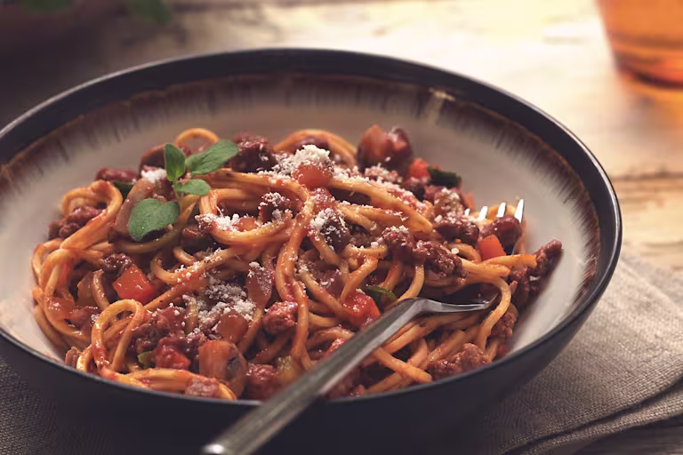 Quorn spaghetti bolognese har 90% mindre mættet fedt end kødversionen†[1]
