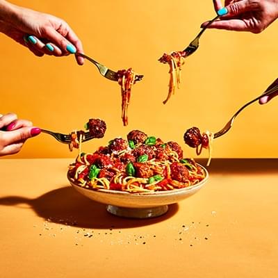 Quorn spaghetti bolognese har 90% mindre mættet fedt end kødversionen†[1]